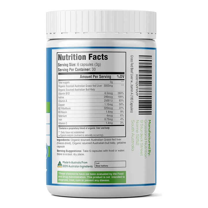 Imagina despertar cada mañana con una energía renovada, sintiéndote más fuerte y concentrado. Nuestra fórmula 2 en 1 combina lo mejor de la naturaleza: hígado de res 100% orgánico, alimentado con pasto y libre de químicos, junto con algas marinas cosechadas en aguas puras de Tasmania. Sin rellenos, sin conservantes, solo nutrientes puros que tu cuerpo absorberá fácilmente.