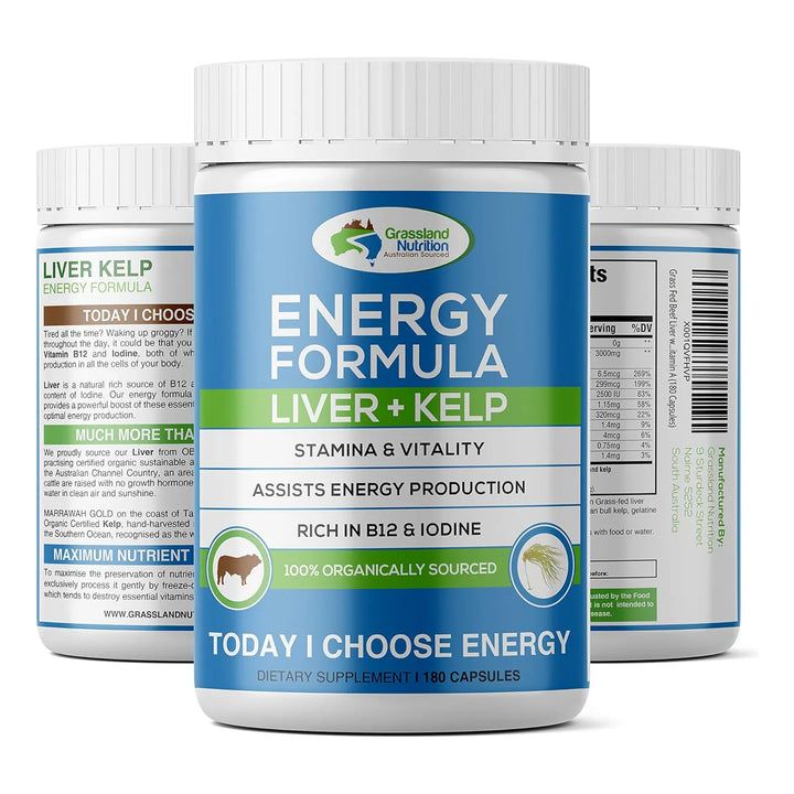 ¿Sientes que tu energía no es la misma? ¿Te cuesta mantenerte activo durante el día? Descubre el poder del Hígado De Res Orgánico Alimentado Con Pasto, enriquecido con algas marinas silvestres, una fórmula única diseñada para revitalizar tu cuerpo y mente. Este suplemento no solo te brinda nutrientes esenciales como B12 natural, yodo, hierro y vitamina A, sino que también optimiza tu metabolismo y función tiroidea para que recuperes esa vitalidad que creías perdida.