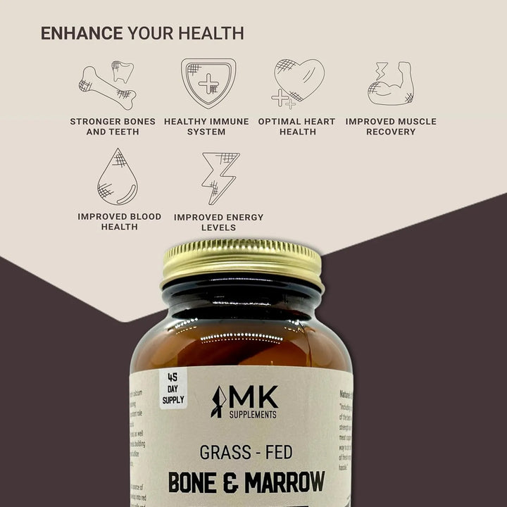 El Hueso y Médula de Res 3000 mg actúa como un potente multivitamínico natural, proporcionando nutrientes esenciales que tu cuerpo absorbe fácilmente. Al ser liofilizado, conserva todos sus beneficios intactos, permitiéndote disfrutar de una salud ósea, dental, inmune y nerviosa óptima.
