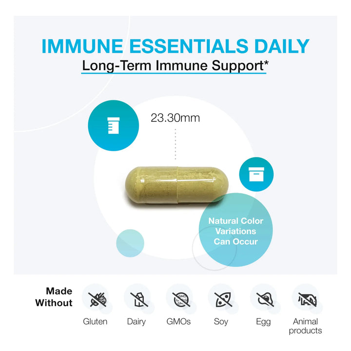 ¿Te preocupa mantener tu salud en óptimas condiciones? Imagina un producto que no solo refuerza tus defensas, sino que también te brinda tranquilidad al saber que estás protegiendo tu bienestar a largo plazo. Immune Essentials Daily es la solución que estabas buscando, una fórmula avanzada con ingredientes clínicamente respaldados para apoyar tu sistema inmunológico de manera constante y efectiva.