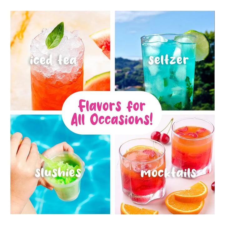 Este kit no es solo para conos de nieve. ¿Eres un amante de los cócteles? Añade un toque tropical a tus bebidas con los sabores de piña colada o frambuesa azul. ¿Prefieres algo refrescante para el verano? Una granita de limón o uva será tu mejor aliada. La versatilidad de este producto es infinita, y su facilidad de uso lo hace perfecto para cualquier ocasión, sin complicaciones ni preparaciones largas. Simplemente vierte, disfruta y deja que los sabores hagan el resto.