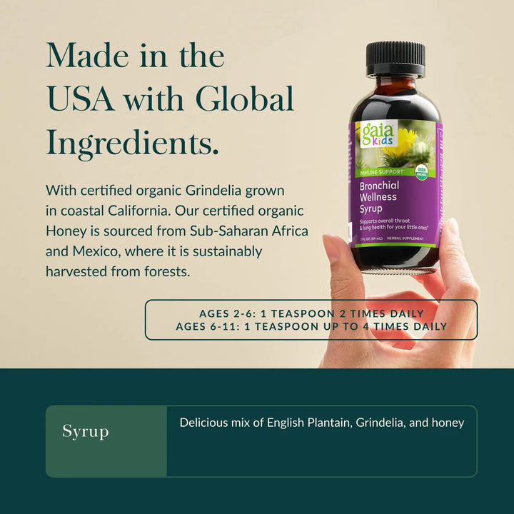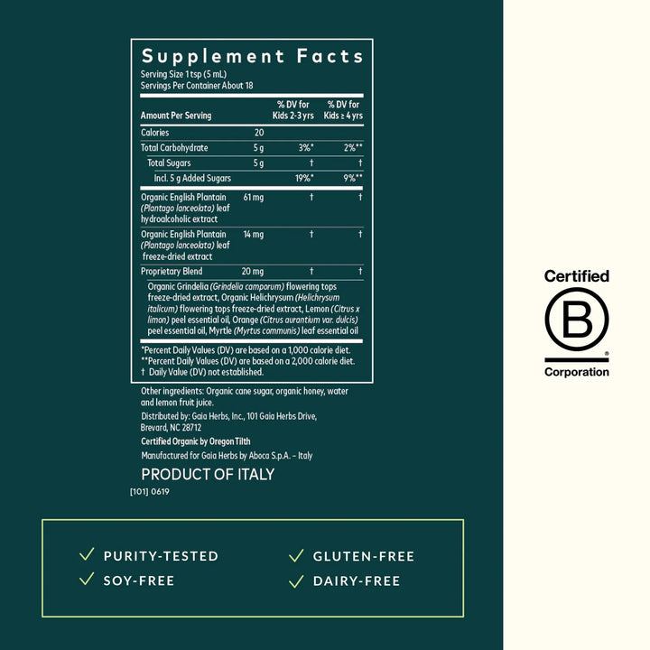 Con una mezcla única de hoja de plátano inglés, grindelia y miel, este jarabe no solo calma la irritación, sino que también protege los pulmones y la garganta. Sabemos lo difícil que es ver a tu pequeño incómodo, por eso hemos creado una fórmula libre de gluten y artificiales, fabricada con orgullo en EE.UU. desde 1987. ¿No sería maravilloso darle a tu hijo un respiro natural?