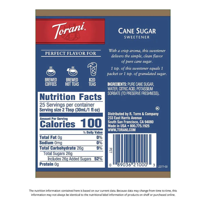 El Jarabe De Caña De Azúcar Torani disuelve instantáneamente en bebidas frías o calientes, distribuyendo un sabor uniforme y equilibrado. Su fórmula está diseñada para integrarse perfectamente sin alterar la textura de tus preparaciones. Simplemente agrega una cucharada (o más, según tu preferencia) a tu bebida favorita y revuelve. ¡Listo! Disfruta de un sabor premium en segundos.