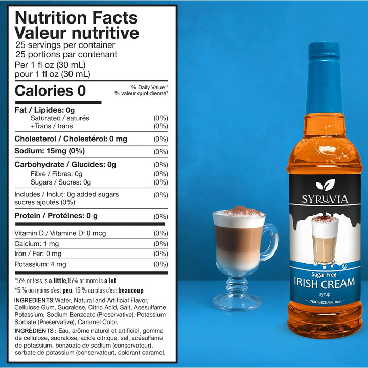 Este jarabe logra su transformación gracias a una mezcla cuidadosa de ingredientes naturales y edulcorantes de alta calidad. La sucralosa proporciona dulzor sin calorías, mientras que los extractos premium recrean el auténtico sabor de la crema irlandesa. ¡Es como tener un barista profesional en tu cocina!
