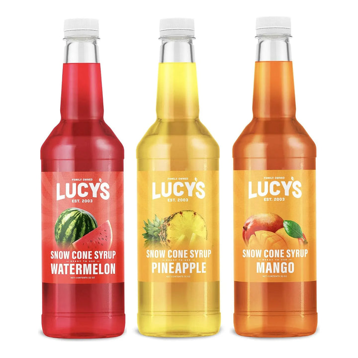 Imagina un día caluroso de verano, el sol brillando y tú, rodeado de amigos y familia, disfrutando de un refrescante cono de nieve con sabores tropicales que te transportan a unas vacaciones en la playa. Con los Jarabes de Cono de Nieve Sandía, Piña y Mango de Lucy's, puedes crear momentos inolvidables en casa, sin complicaciones y con un sabor auténtico que a todos encantará.