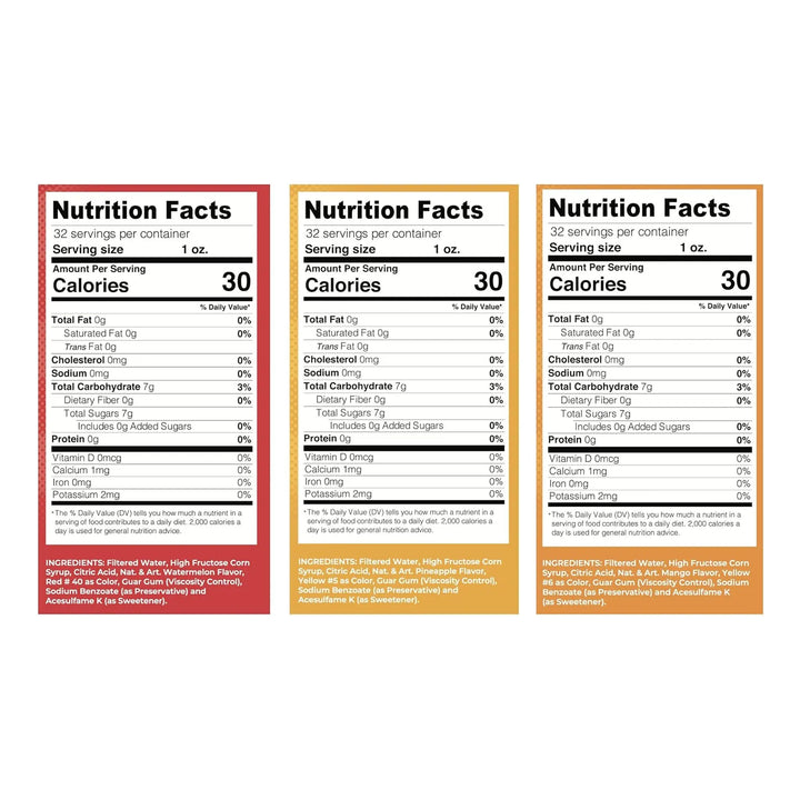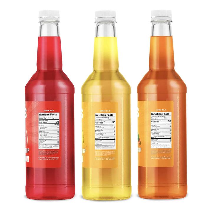 Estos jarabes no solo son deliciosos, sino que también son una solución práctica para quienes buscan ahorrar tiempo y dinero. Con un paquete de 3 botellas de 32 onzas, tendrás suficiente para preparar hasta 64 conos de nieve, perfectos para fiestas, reuniones familiares o simplemente para consentirte a ti mismo. Además, al ser importados de Estados Unidos, garantizamos la más alta calidad en cada gota.