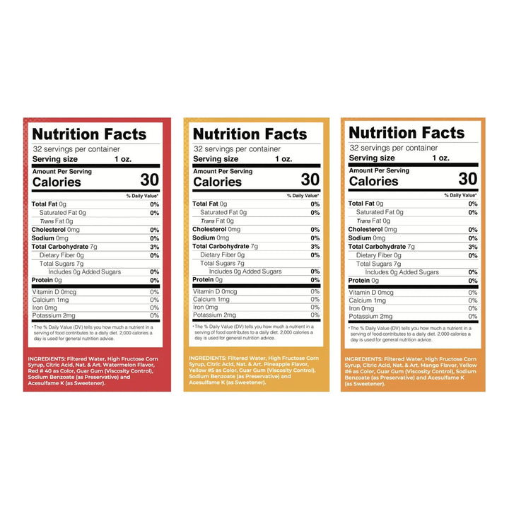 Imagina la frescura de la sandía, la dulzura del mango y el toque tropical de la piña fusionados en un delicioso jarabe para cono de nieve. Nuestro paquete de 3 sabores es la solución perfecta para alegrar tus meriendas, fiestas o esos momentos en los que solo quieres consentirte. 🌞