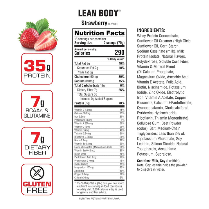 Este revolucionario batido no solo ahorra tiempo al eliminar la necesidad de tomar múltiples píldoras y polvos, sino que también ofrece un sabor galardonado, reconocido por el Instituto Culinario Americano. Con proteínas de liberación rápida y lenta, Lean Body asegura un flujo constante de aminoácidos para un crecimiento muscular más rápido y un aumento de fuerza sostenido.
