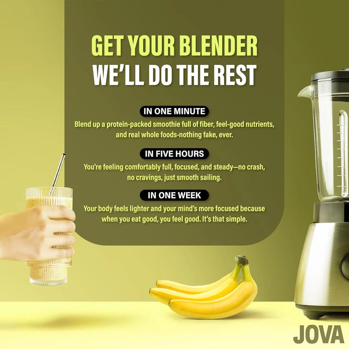 El Jova Shake reemplaza comidas sin sacrificar nutrientes. Su mezcla de proteínas y fibra regula tu apetito, mientras que los ingredientes integrales te dan energía sostenida. ¡Es como tener un chef nutricionista en tu cocina!