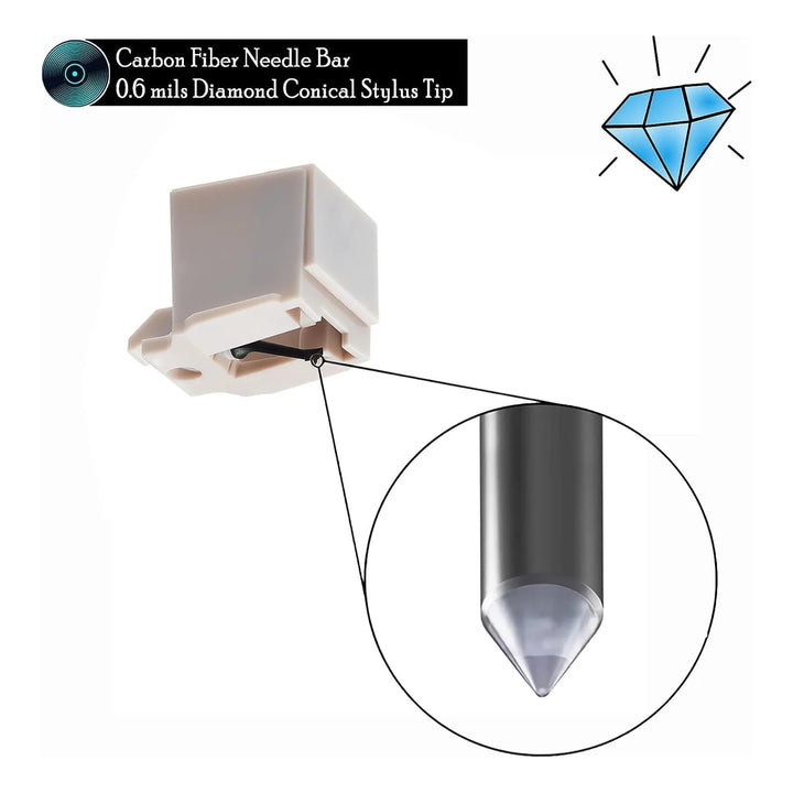 - 🎵 Sonido impecable: La punta de diamante de 0.6 mils garantiza una reproducción fiel y detallada, como si estuvieras en vivo.