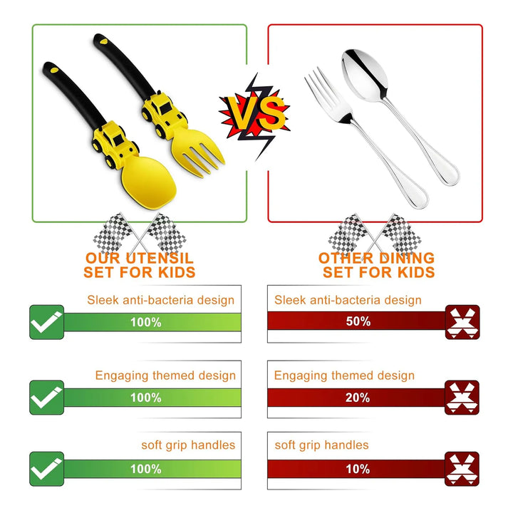 Imagina un mundo donde tu pequeño no solo disfruta de sus comidas, sino que también desarrolla habilidades esenciales mientras lo hace. Con nuestro Juego de Cubiertos Infantiles Adecuados para Bebés, diseñado con temática de automóvil, cada bocado se convierte en una aventura. 🚗✨