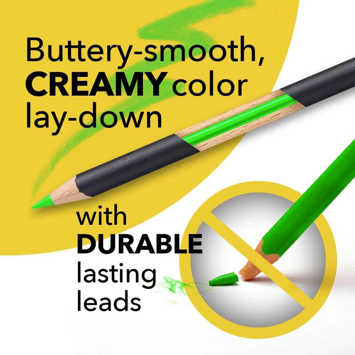Los lápices están diseñados para ofrecer una experiencia de color excepcional gracias a su núcleo de cera de alta calidad. Al aplicar los lápices sobre el papel, la mina se desliza suavemente, depositando pigmentos intensos que se pueden mezclar y capas para lograr efectos profesionales. El estuche organizado te permite acceder rápidamente a cualquier color, mientras que el tutorial incluido te enseña técnicas avanzadas como sombreado, bruñido y más.