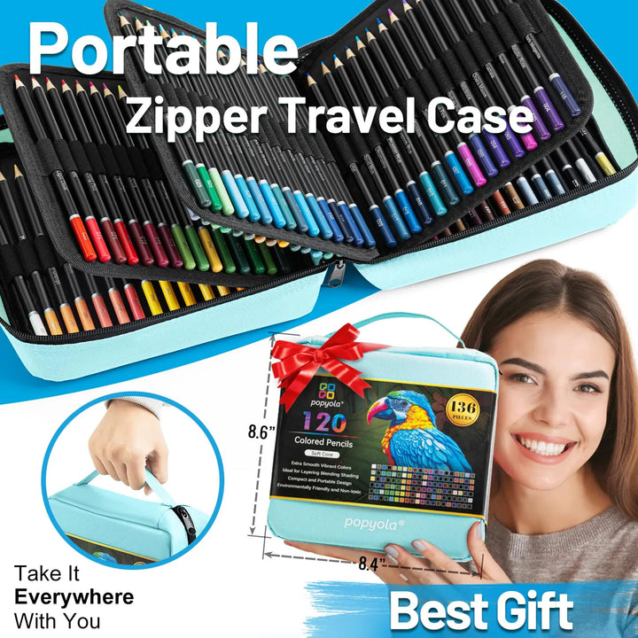 ¿Cansado de lápices que se rompen fácilmente o pierden su vibración? Nuestra selección premium de 120 toneles a base de aceite garantiza una aplicación suave como la seda, con una cobertura impecable que se adhiere al papel sin esfuerzo. El núcleo suave resiste la presión, permitiéndote sombrear con precisión o cubrir grandes áreas con igual maestría. Y lo mejor: vienen acompañados de un estuche de tela reforzada con cremallera, diseñado para soportar viajes, caídas y el uso diario, manteniendo todo organizado y protegido como un tesoro artístico.