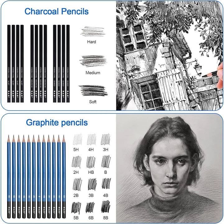 Este juego de lápices está diseñado para ofrecer una experiencia artística sin límites. Los lápices de grafito permiten sombreados precisos, mientras que las acuarelas solubles en agua te dan la libertad de crear efectos únicos. Los lápices de carbón son ideales para contrastes dramáticos, y los colores metálicos añaden un toque especial a tus obras.