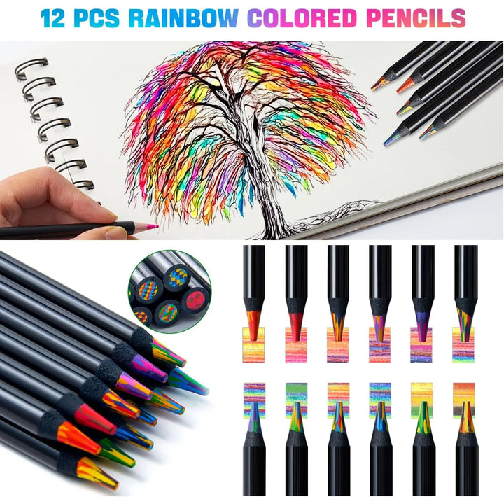 - 🎨 Colores Que Inspiran: Lápices arcoíris con mezclas únicas para crear efectos realistas y sorprendentes.