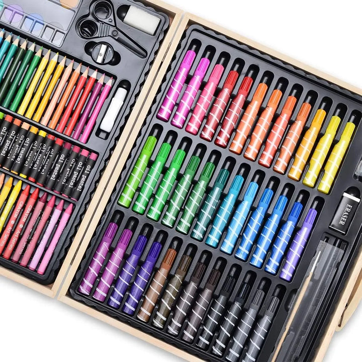Imagina un mundo donde la creatividad no tiene límites, donde niños y adultos pueden explorar su talento artístico con las herramientas más completas y de alta calidad. El Juego De Arte De Lujo 130 Piezas con Estuche De Madera Portátil es la solución perfecta para quienes buscan inspiración, organización y diversión en un solo lugar. Con este kit, no solo obtienes materiales profesionales, sino también la libertad de crear en cualquier momento y lugar.
