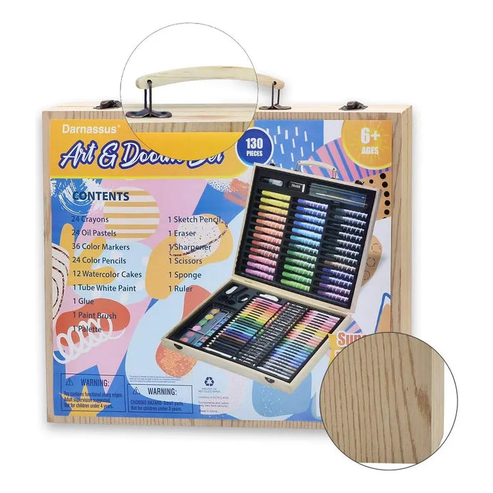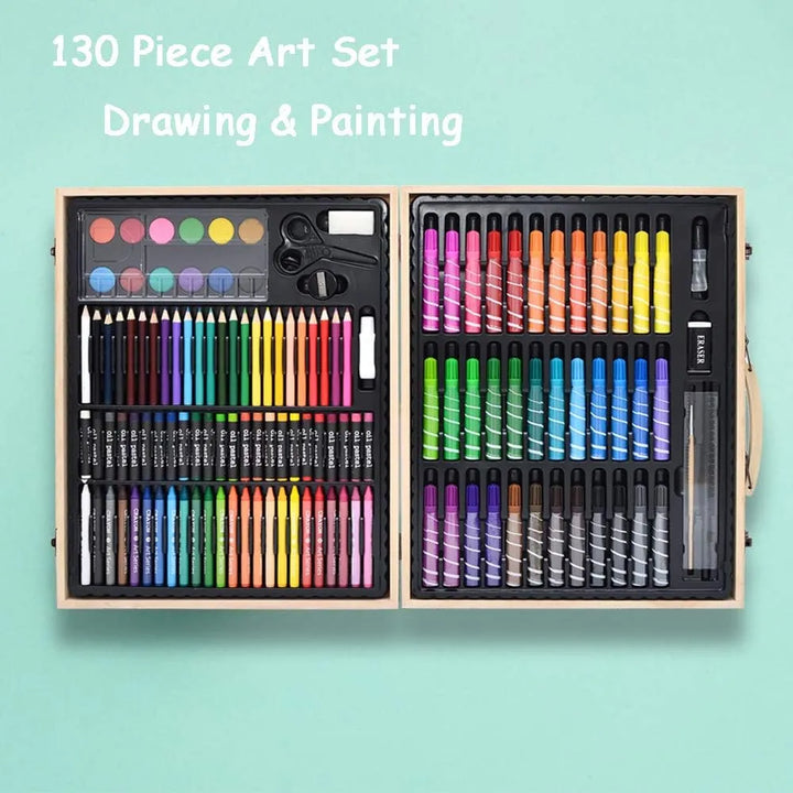 - 🎨 Creatividad sin límites: Con 130 piezas, incluyendo crayones, marcadores y acuarelas, tendrás todo lo necesario para expresarte.