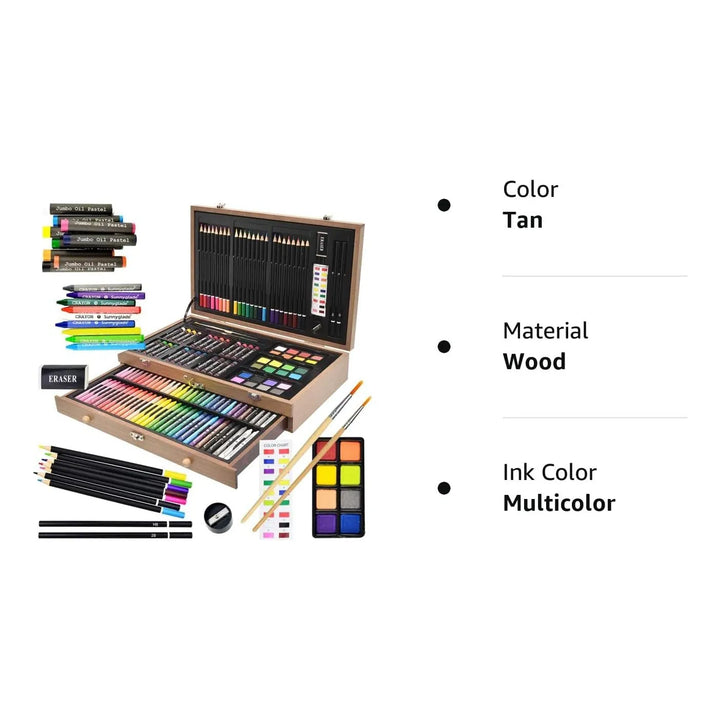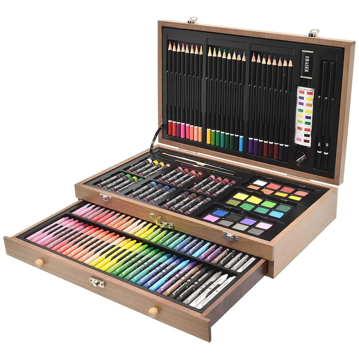 Este juego de arte está diseñado para simplificar tu experiencia creativa. La caja de madera actúa como un organizador intuitivo, permitiéndote acceder rápidamente a las herramientas que necesitas. Los lápices y ceras de alta calidad proporcionan trazos suaves y colores intensos, mientras que los pinceles y acuarelas te ayudan a mezclar y experimentar con técnicas avanzadas.