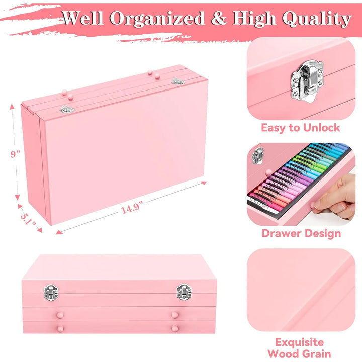 ¿Qué harías si tuvieras la libertad de crear en cualquier momento y lugar? Este portátil kit de arte te acompaña al aula, al parque o en tus viajes, guardando todo de forma organizada en su elegante caja de madera. Los padres adorarán su diseño seguro y no tóxico, permitiendo que los pequeños artistas exploren su imaginación sin riesgos. Para los adultos, es la oportunidad de reconectarse con su lado creativo, liberar estrés y descubrir talentos ocultos.