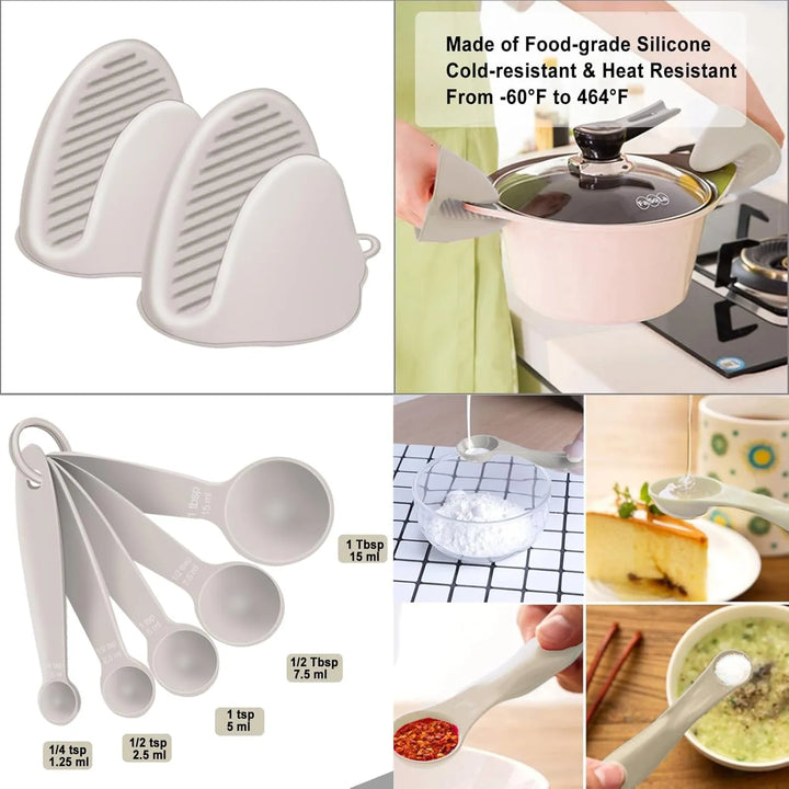 - 🎁 Todo en uno: 12 piezas + 5 cucharas medidoras y 2 guantes de regalo. ¡El set más completo para dominar cualquier receta!