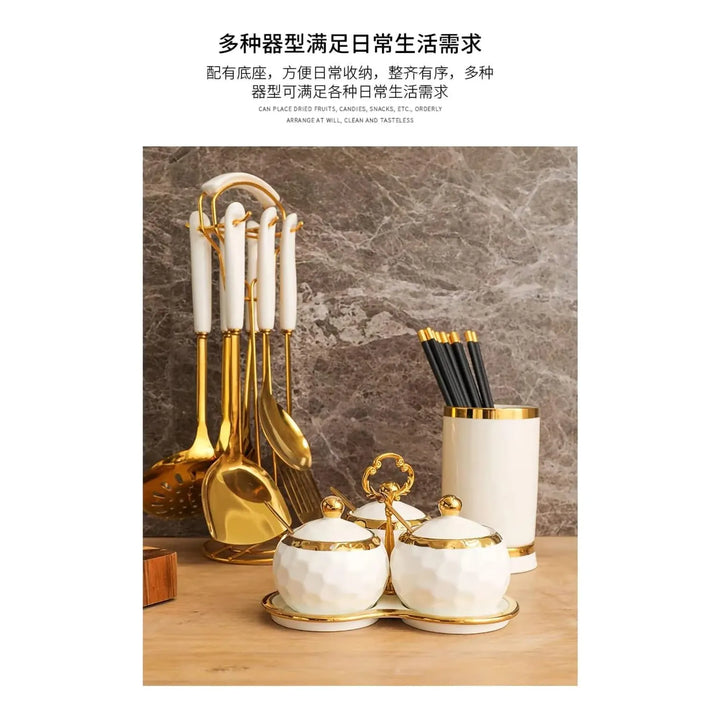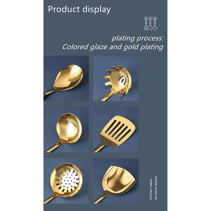 ¿Cansado de utensilios que se oxidan o acumulan suciedad? Este juego combina acero inoxidable de alta calidad con un exclusivo chapado en oro electrolítico, resistente a la corrosión y fácil de limpiar. Su mango cerámico con esmalte de colores no solo es ergonómico, sino que añade un toque de lujo a cada movimiento. ¡Prepara, sirve y sorprende con herramientas que se adaptan a tu ritmo!