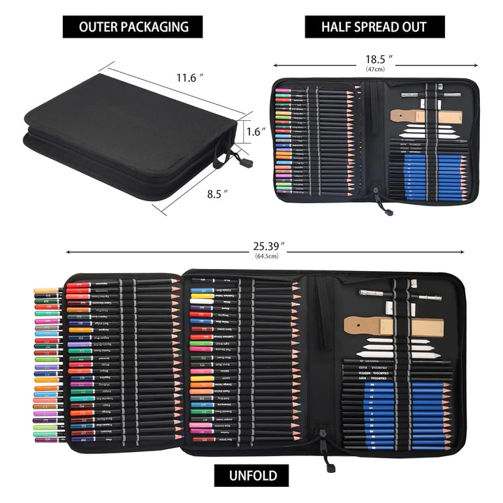Este producto está diseñado para simplificar tu proceso creativo. Los núcleos suaves permiten una aplicación uniforme, mientras que los accesorios como los tocones de mezcla facilitan degradados profesionales. Usa los lápices de grafito para bosquejos iniciales, luego añade capas de color con los lápices numerados, mezclándolos para lograr profundidad. La funda mantiene todo accesible, evitando interrupciones en tu flujo de trabajo.