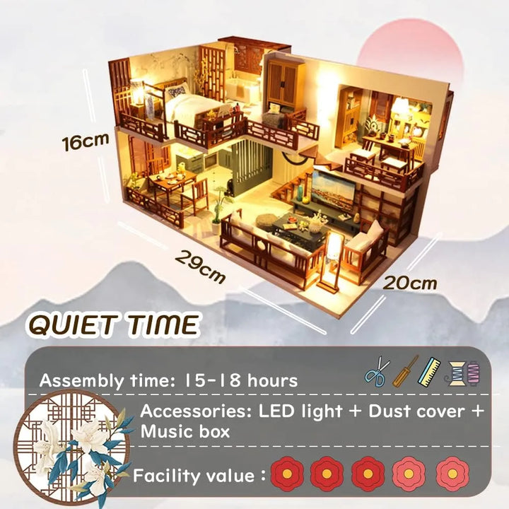 El Kit de Casa de Muñecas Miniatura está diseñado para ofrecerte una experiencia de construcción gratificante. Cada pieza ha sido cortada con precisión para encajar perfectamente, permitiéndote ensamblar tu casa de muñecas paso a paso. El manual detallado, aunque en inglés, incluye imágenes del producto real que hacen que el proceso sea intuitivo y disfrutable.