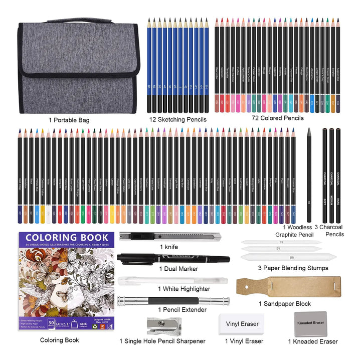 No más frustración al buscar el lápiz perfecto o preocuparte por la durabilidad. Con 12 lápices de grafito de diferentes durezas, 72 lápices de colores a base de aceite y herramientas profesionales como tocones de papel y un sacapuntas de precisión, tendrás todo al alcance de tu mano. La bolsa de alta calidad con diseño de doble capa no solo protege tus materiales, sino que también se convierte en tu compañera de viaje, ideal para crear en cualquier lugar.