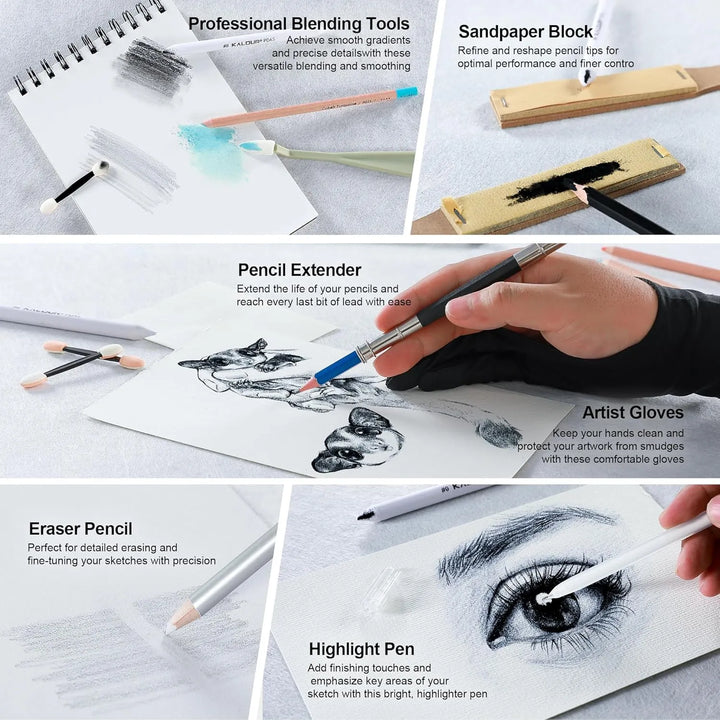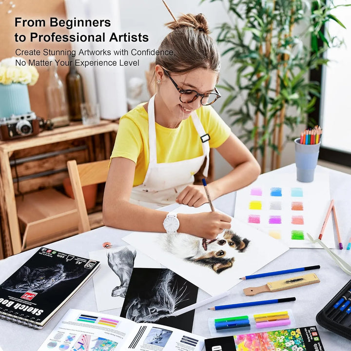 - ✨ Calidad profesional: Lápices y accesorios premium que garantizan trazos precisos y duraderos, sin importar tu nivel de habilidad.