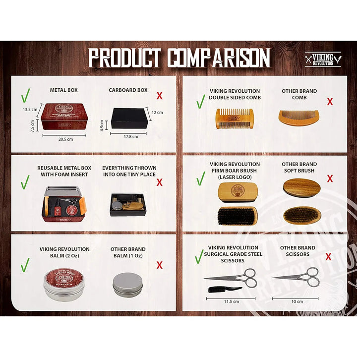 ¿Cansado de barbas encrespadas, picazón y falta de definición? Nuestro kit incluye todo lo necesario para domar, nutrir y dar forma a tu barba como un verdadero vikingo. Desde el cepillo de pelo de jabalí que estimula la circulación hasta el aceite y bálsamo de sándalo que hidratan y aromatizan, cada producto ha sido seleccionado para ofrecer resultados visibles desde el primer uso.
