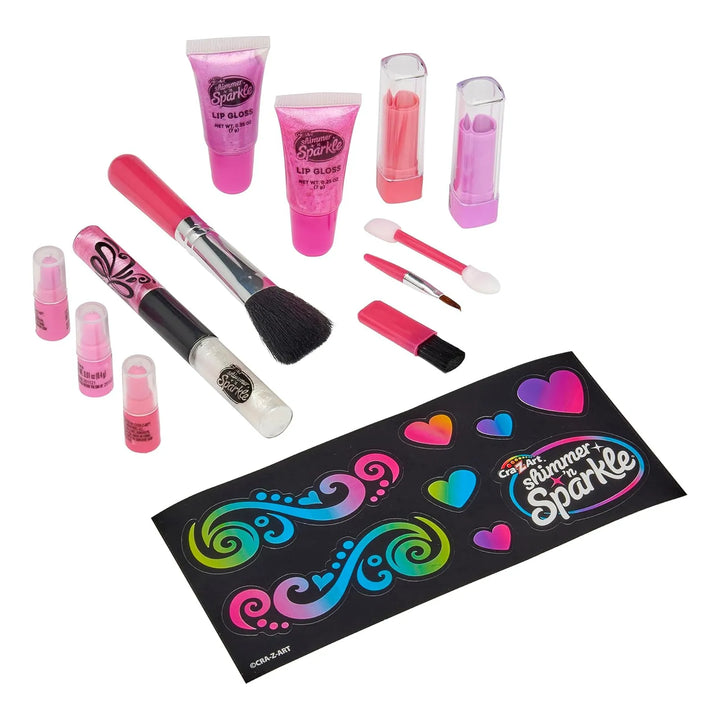 El Kit Shimmer 'n Sparkle está diseñado para simplificar el maquillaje mientras maximiza el impacto visual. Cada producto está formulado para ser suave en la piel y fácil de aplicar. Las sombras y rubores tienen pigmentación intensa que se mezcla perfectamente, mientras que los brillos de labios añaden un toque divertido y juvenil.