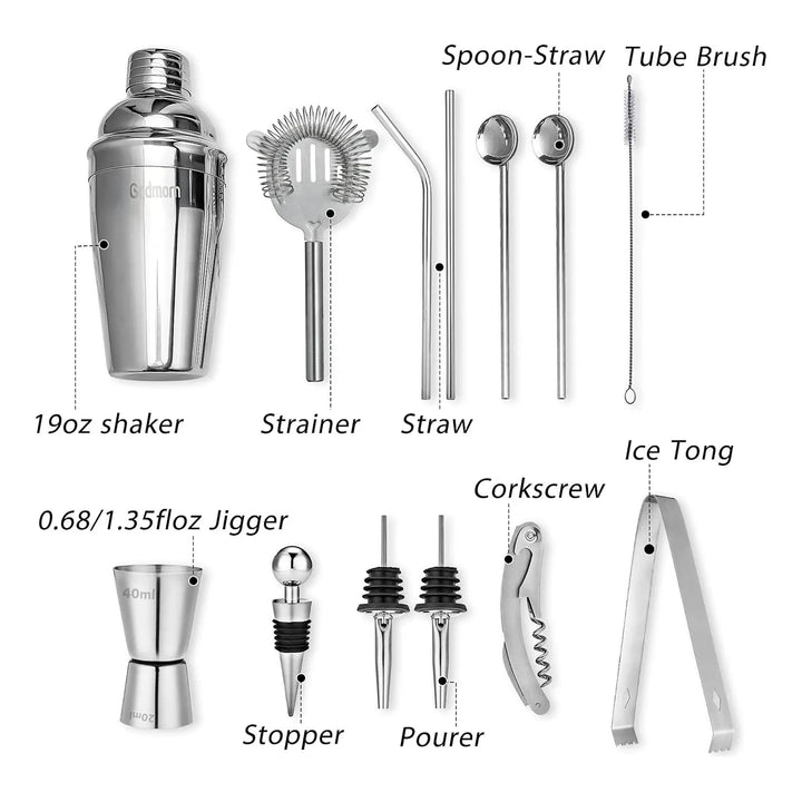 - 🛠️ Todo en uno: 15 piezas esenciales para preparar cócteles como un profesional, sin necesidad de comprar nada más.