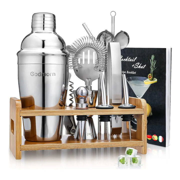 Este kit está diseñado para simplificar la preparación de cócteles, desde los más simples hasta los más elaborados. La coctelera de acero inoxidable con sellado hermético evita derrames, mientras que el colador integrado te permite filtrar los ingredientes sin esfuerzo. El libro de recetas te guiará paso a paso, incluso si nunca has preparado un cóctel antes.
