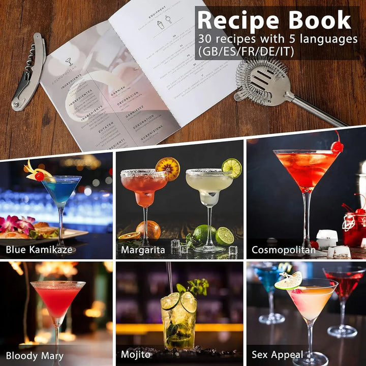 - 🍹 Libro de recetas multilingüe: 30 recetas de cócteles clásicos y modernos, traducidas a 5 idiomas, para que nunca te quedes sin ideas.