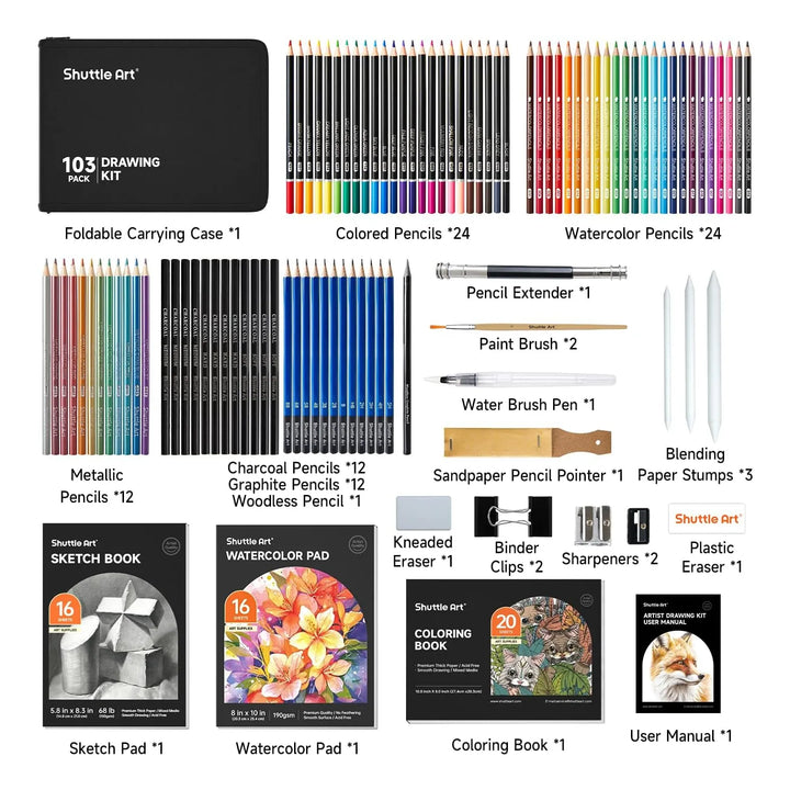 ¿Sueñas con expresar tu creatividad pero no encuentras las herramientas adecuadas? El Kit de Dibujo Profesional Plus 103 Piezas Shuttle Art es la solución definitiva para artistas, principiantes y amantes del arte. Diseñado para ofrecer calidad, versatilidad y comodidad, este kit incluye todo lo que necesitas para dar vida a tus proyectos artísticos.