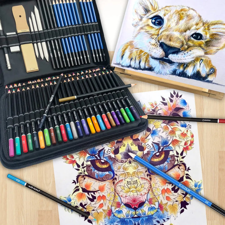 No importa si estás empezando o eres un experto, la calidad de tus materiales marca la diferencia. Los núcleos de alta resistencia de los lápices Kalour evitan roturas y ofrecen una mezcla impecable, ideal para técnicas avanzadas. Además, el estuche de nailon con cremallera garantiza que tus herramientas estén siempre organizadas y listas para inspirarte, ya sea en casa o en tus viajes.