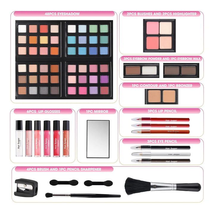 - ✨ Variedad sin límites: 48 sombras, 6 brillos de labios y más para experimentar sin miedo.