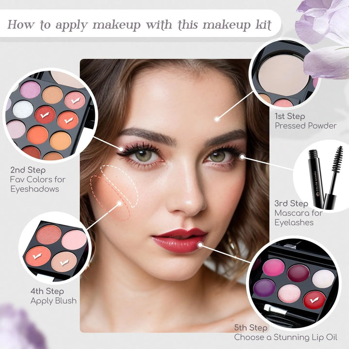 - ✨ Maquillaje completo en un solo lugar: Olvídate de cargar múltiples productos. ¡Todo lo esencial en un práctico estuche!