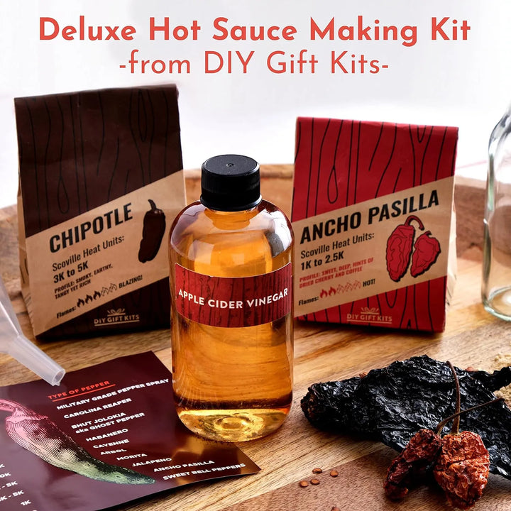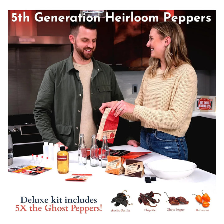 ¿Qué hace especial a este kit? Los pimientos reliquia cultivados por agricultores de quinta generación en Boulder, CO, son el secreto detrás de cada botella. Estos pimientos, combinados con nuestro paquete de refuerzo "Top Secret" de pimienta fantasma 100% pura, garantizan un sabor intenso y auténtico que no encontrarás en ningún otro lugar. Además, el kit incluye todo lo necesario para preparar, embotellar y disfrutar de tus creaciones, desde embudos y guantes hasta tiras de pH para asegurar la perfección en cada lote.