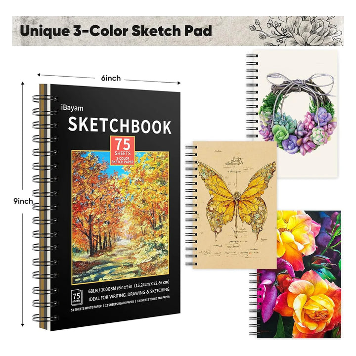 1. Bloc de bocetos de 3 colores (6x9 pulgadas) con 75 hojas de papel 100GSM para resultados profesionales 😍
