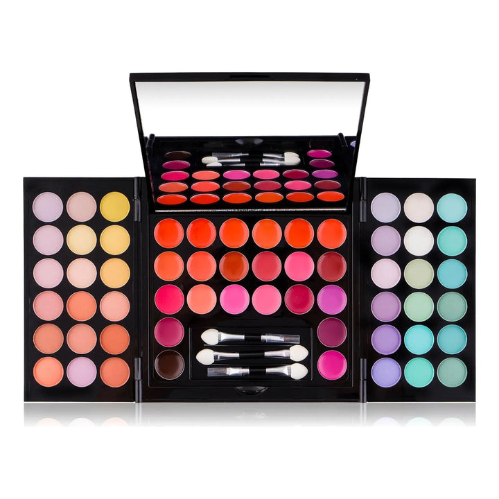 ¿Cansada de perder horas buscando los tonos perfectos? Este kit incluye sombras de ojos en acabados mate y brillante, desde tonos neutros hasta colores vibrantes, ideales para cualquier ocasión. Además, cuenta con una paleta de labios y brillos que complementarán tu look al instante. Todo en un diseño compacto y elegante que se adapta a tu espacio.