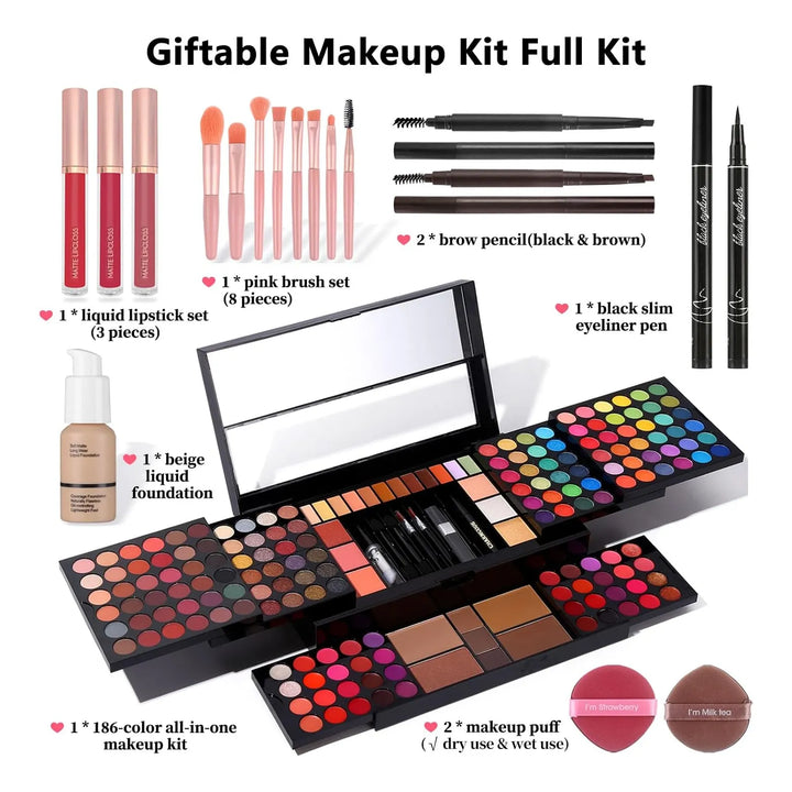 - Estuche todo en uno con más de 180 productos esenciales para un maquillaje completo 💄