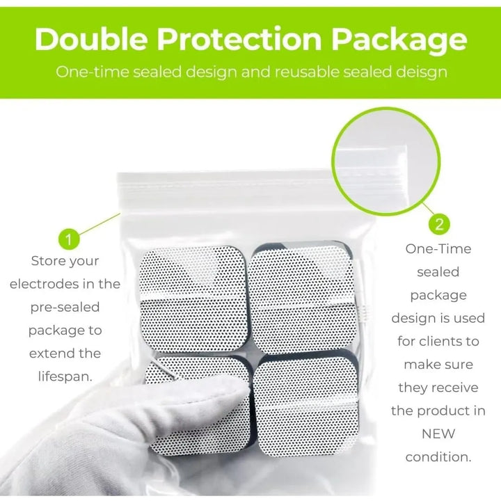 2. Fácil almacenamiento – Su empaque resellable mantiene los electrodos en perfecto estado 🏷️
