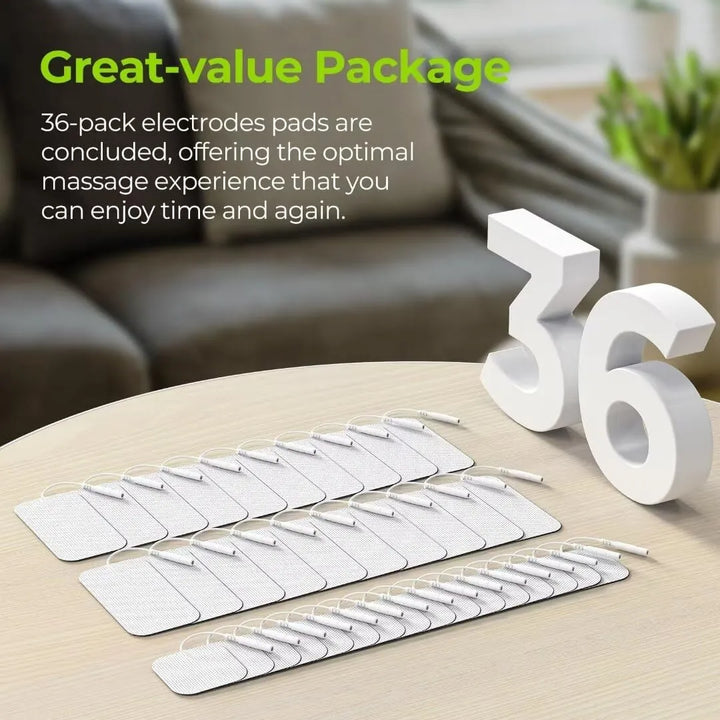 1. 36 electrodos de alta calidad – Más sesiones de alivio sin preocuparte por repuestos frecuentes 😊