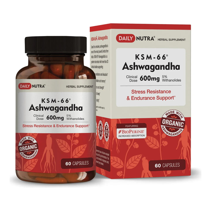 ¿Sientes que el estrés te consume día a día? ¿Te cuesta concentrarte o recuperar energía después de una jornada agotadora? La solución está aquí, en un frasco de Extracto Orgánico de Raíz Ashwagandha KSM-66, formulado con 600 mg de potencia pura y un 5% de Withanolides, los compuestos activos responsables de sus increíbles beneficios.