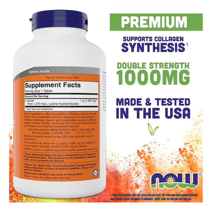 - 💪 Doble Fuerza: 1000 mg de L-Lisina pura por tableta, el doble que otras opciones.