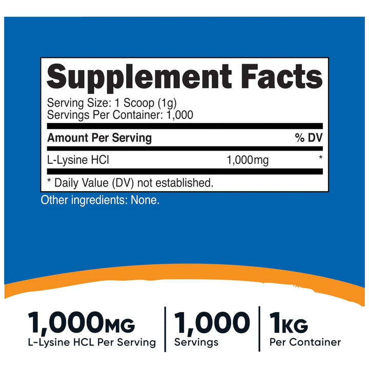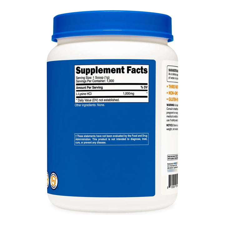 - Pureza garantizada: Cada porción contiene 0.04 oz de L-lisina pura, sin aditivos ni rellenos.
