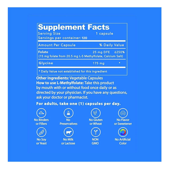 Este suplemento dietético está diseñado para quienes buscan una solución real y científica para mejorar su bienestar emocional y físico. El folato optimizado y altamente bioactivo en cada cápsula actúa directamente en tu cuerpo, apoyando la producción de neurotransmisores clave como la serotonina y la dopamina, responsables de tu felicidad y motivación.