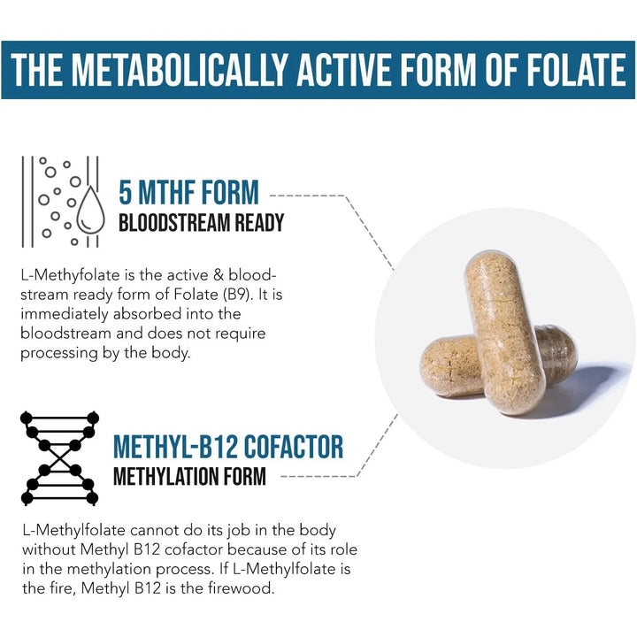 Combinación sinérgica: Metilfolato + Metil-B12 = Máxima eficiencia en procesos de metilación. ⚡