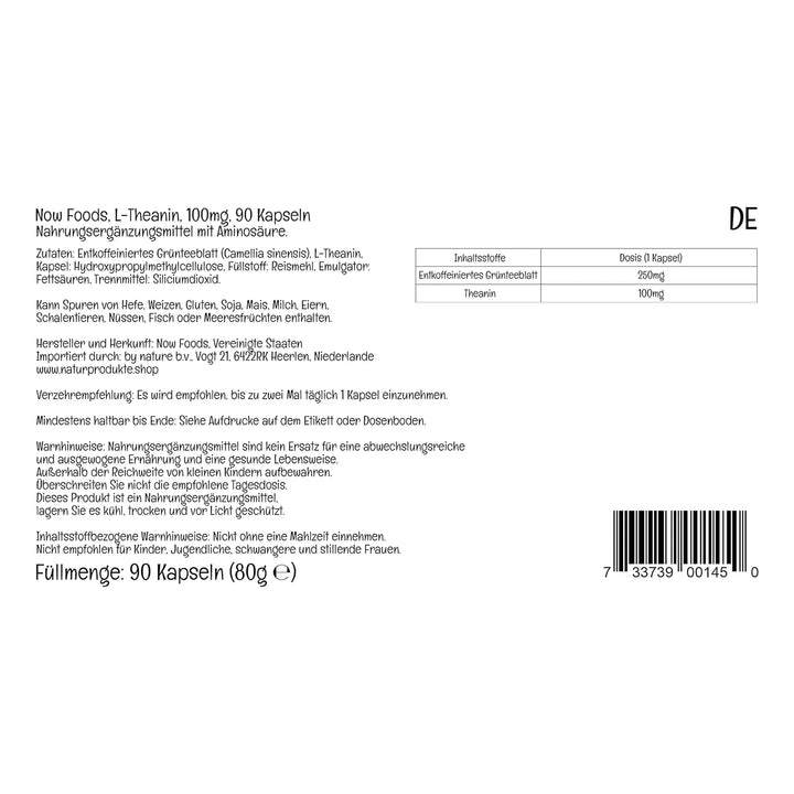 - 100mg de L-Teanina por cápsula, dosificación óptima para resultados visibles 😊